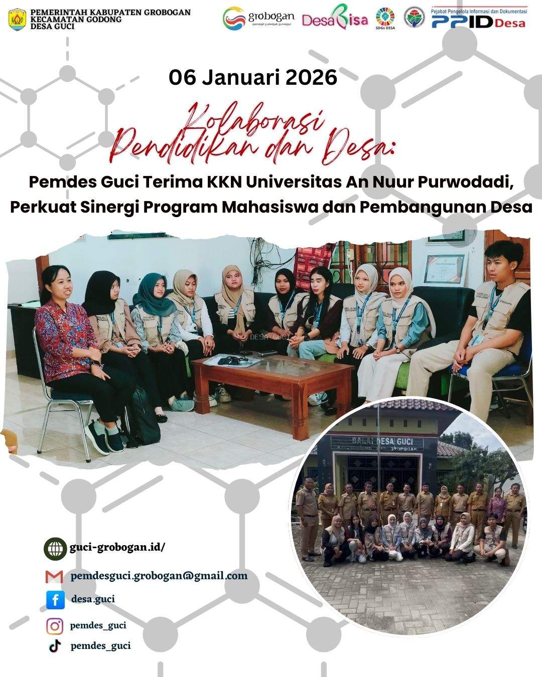 05 Februari 2026 Sewa Lelang Tanah Kas Desa Guci 2026 dilaksanakan Kamis Kliwon, 12 Februari 2026       05 Februari 2026 Pembayaran PBB-P2 Serentak 2026 Desa Guci dilaksanakan Jum'at Legi 13 Februari 2026       10 Januari 2026 Surat Pernyataan Tidak Ada Kasus Korupsi 3 Tahun Terakhir       31 Agustus 2025 JALAN SEHAT BARENG WARGA DESA GUCI 2025